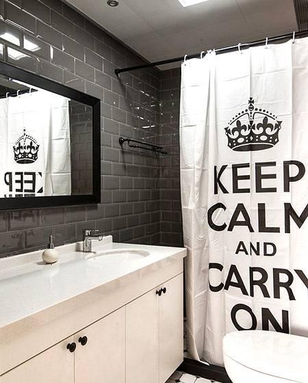 如果卫浴间面积过小,或者装饰时没有考虑到干湿分离,补救方法就是浴帘+挡水条的组合。出租房可以使用免打孔的挂杆,虽然隔水效果相对较差,但胜在便捷。