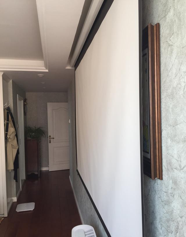 ▲ 这个案例的目的很简单,就是用投影幕布取代电视的,所以干脆就按照了一个画框投影幕布,也不用收起来,画框幕布的投射的效果比普通的软幕更好一些。