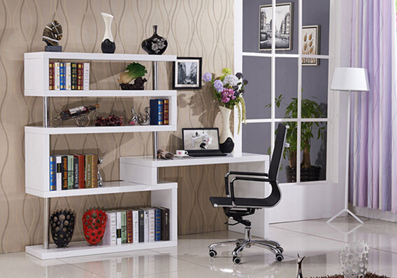 一、家用电脑桌偏重于多功能使用。常将电脑桌与书柜、展示柜等家具组合,方便摆放书籍、花草,还有些女孩子喜欢的布娃娃等装饰品。